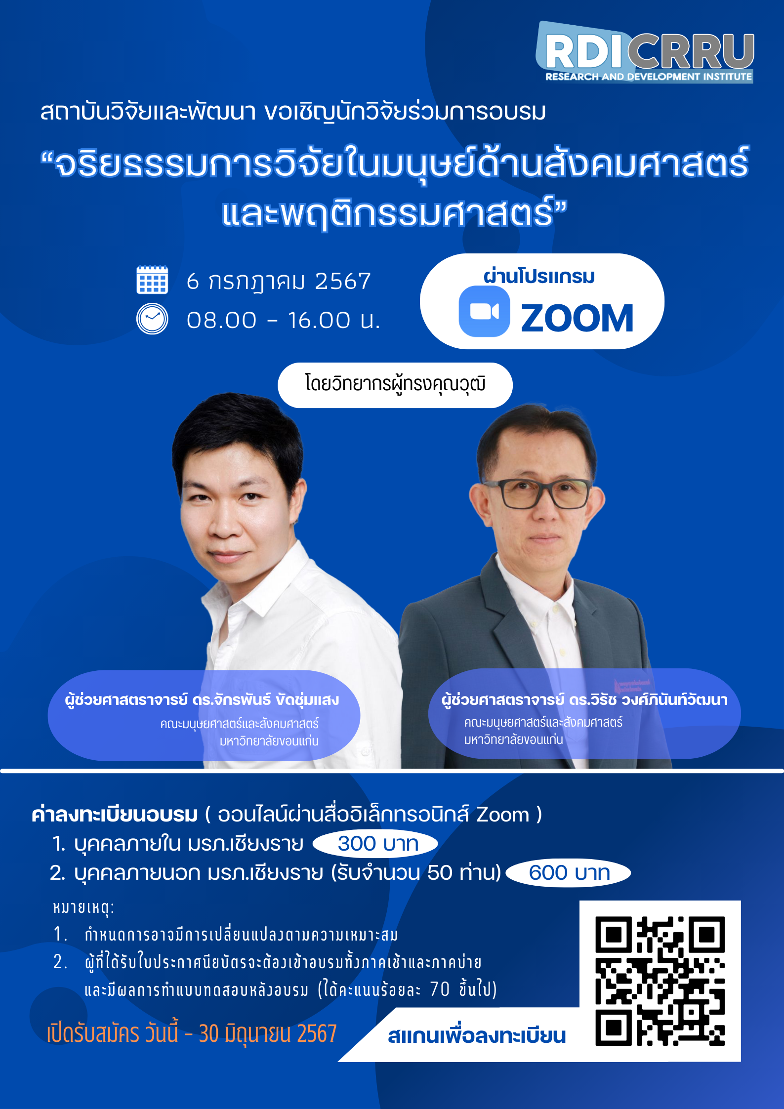 ในวันที่ 6 กรกฎาคม 2567.    เวลา  8.00 – 16.00 น.  ในช่องทางออนไลน์ผ่านโปรแกรม Zoom