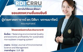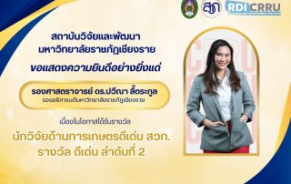 สถาบันวิจัยและพัฒนา มหาวิทยาลัยราชภัฏเชียงราย ขอแสดงความยินดีอย่างยิ่งแด่ รองศาสตราจารย์ ดร.ปวีณา ลี้ตระกูล รองอธิการบดี ในโอกาสที่ได้รับรางวัล "นักวิจัยด้านการเกษตรดีเด่น" รางวัลดีเด่น [...]