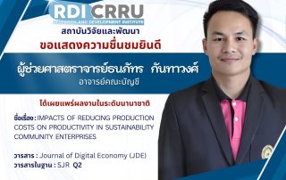 สถาบันวิจัยและพัฒนา ขอแสดงความชื่นชมและยินดีกับ ผู้ช่วยศาสตราจารย์ธนภัทร กันทาวงศ์ อาจารย์คณะบัญชี ได้เผยแพร่ผลงานวิชาการในระดับนานาชาติ เรื่อง : "IMPACTS [...]