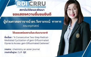 สถาบันวิจัยและพัฒนา ขอแสดงความชื่นชมและยินดีกับผู้ช่วยศาสตราจารย์ ดร.วัชราภรณ์ ทาหารคณะครุศาสตร์ ได้เผยแพร่ผลงานวิชาการในระดับนานาชาติเรื่อง : "A Consecutive Two-Step Radical-Mediated [...]