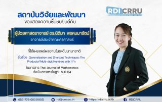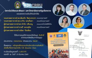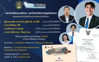 สถาบันวิจัยและพัฒนา มหาวิทยาลัยราชภัฏเชียงราย ขอแสดงความยินดีกับอาจารย์และนักศึกษา คณะเทคโนโลยีดิจิทัล ผู้ช่วยศาสตราจารย์ ดร.ภูมิพงษ์ ดวงตั้ง [...]