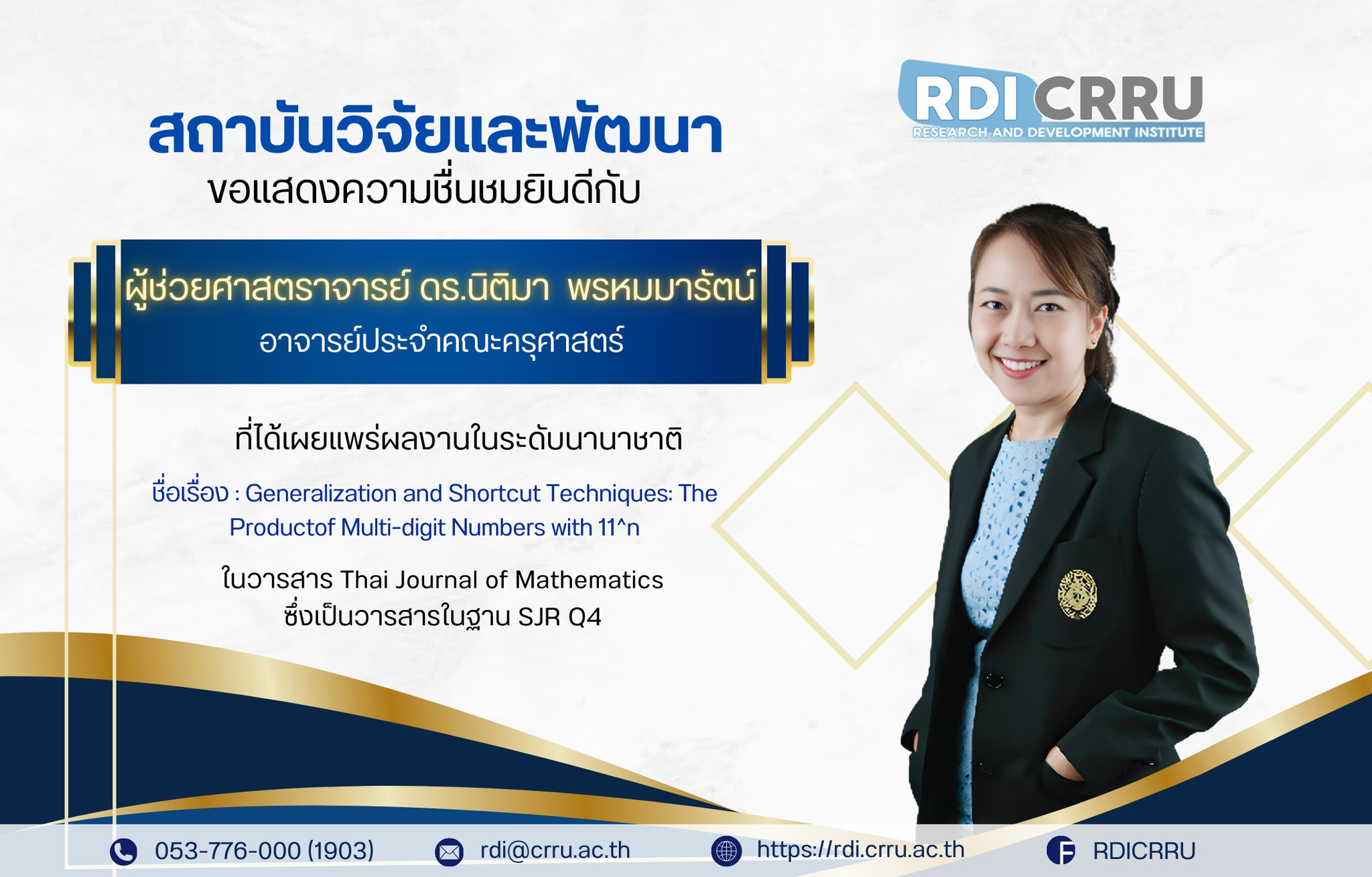 สถาบันวิจัยและพัฒนา ขอแสดงความชื่นชมและยินดีกับ ผู้ช่วยศาสตราจารย์ ดร.นิติมา พรหมมารัตน์ อาจารย์ประจำคณะครุศาสตร์ ที่ได้เผยแพร่ผลงานวิชาการในระดับนานาชาติ เรื่อง : [...]