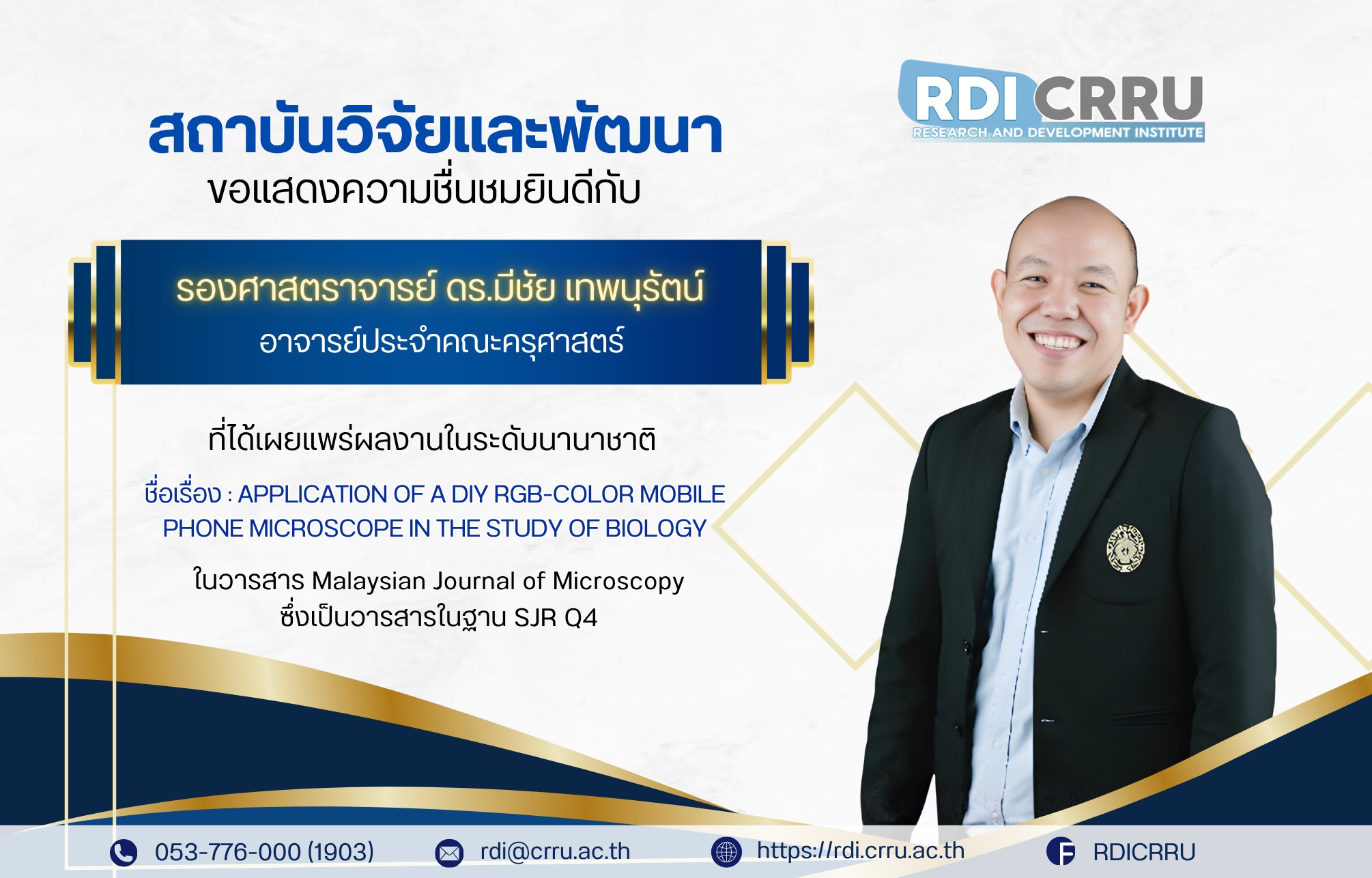 สถาบันวิจัยและพัฒนา มหาวิทยาลัยราชภัฏเชียงราย ขอแสดงความยินดีกับนักวิจัย รองศาสตราจารย์ ดร.ต้องรัก จิตรบรรเทา สังกัด คณะครุศาสตร์ ผู้ช่วยศาสตราจารย์ [...]