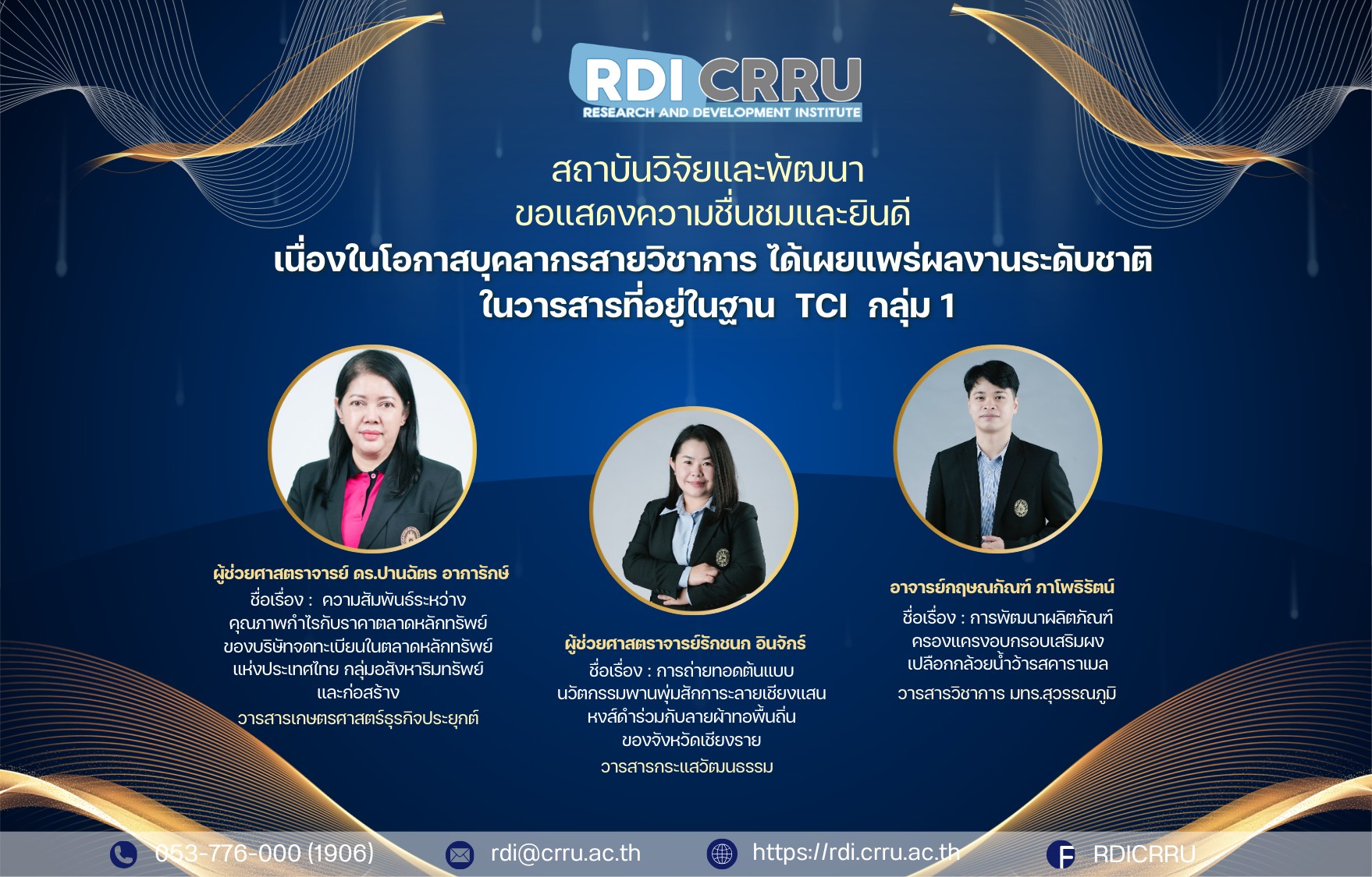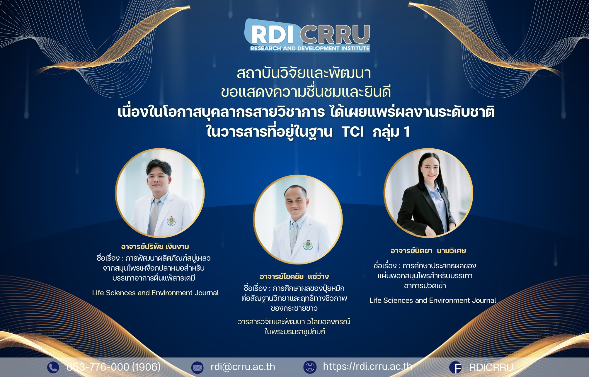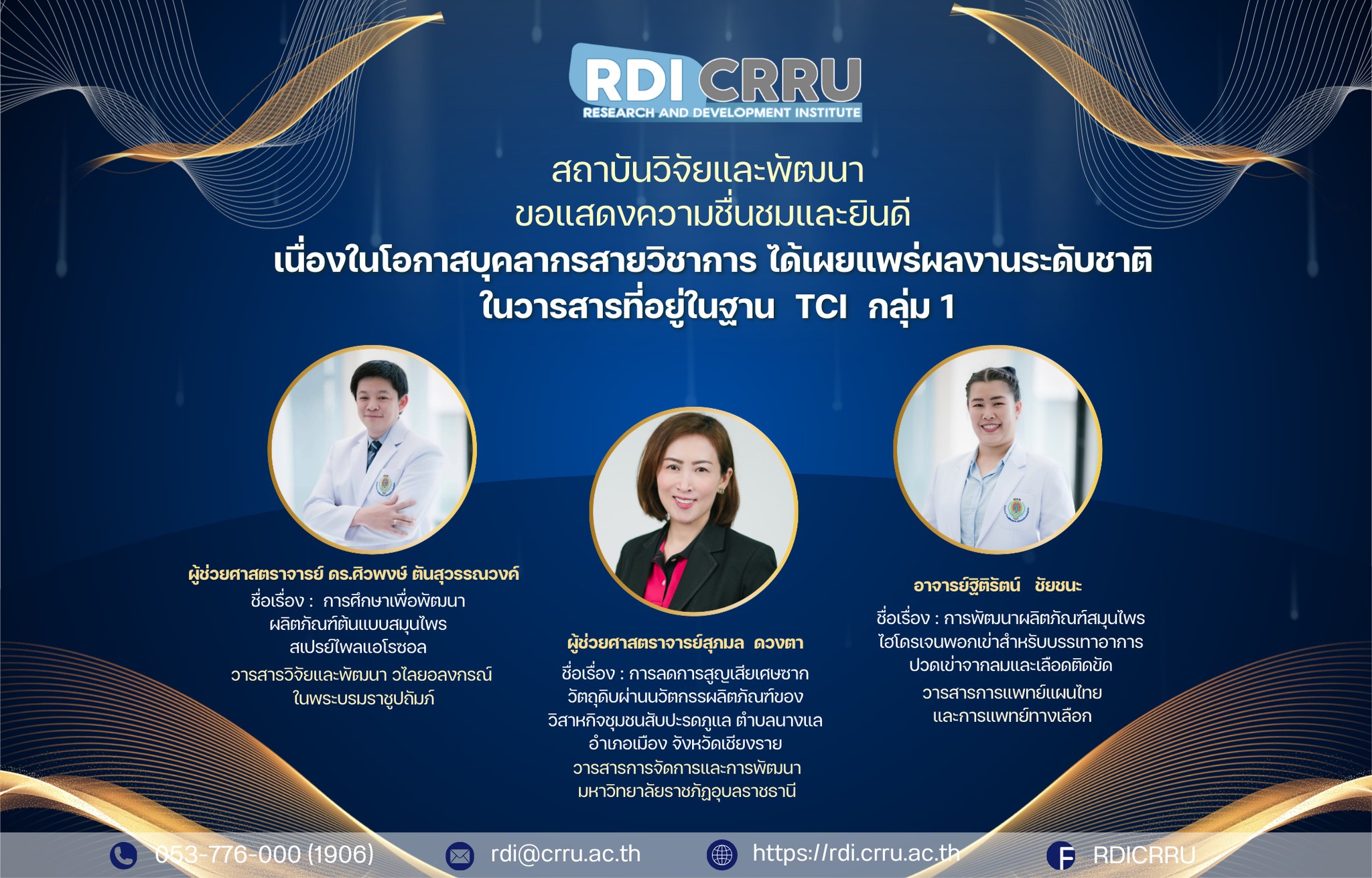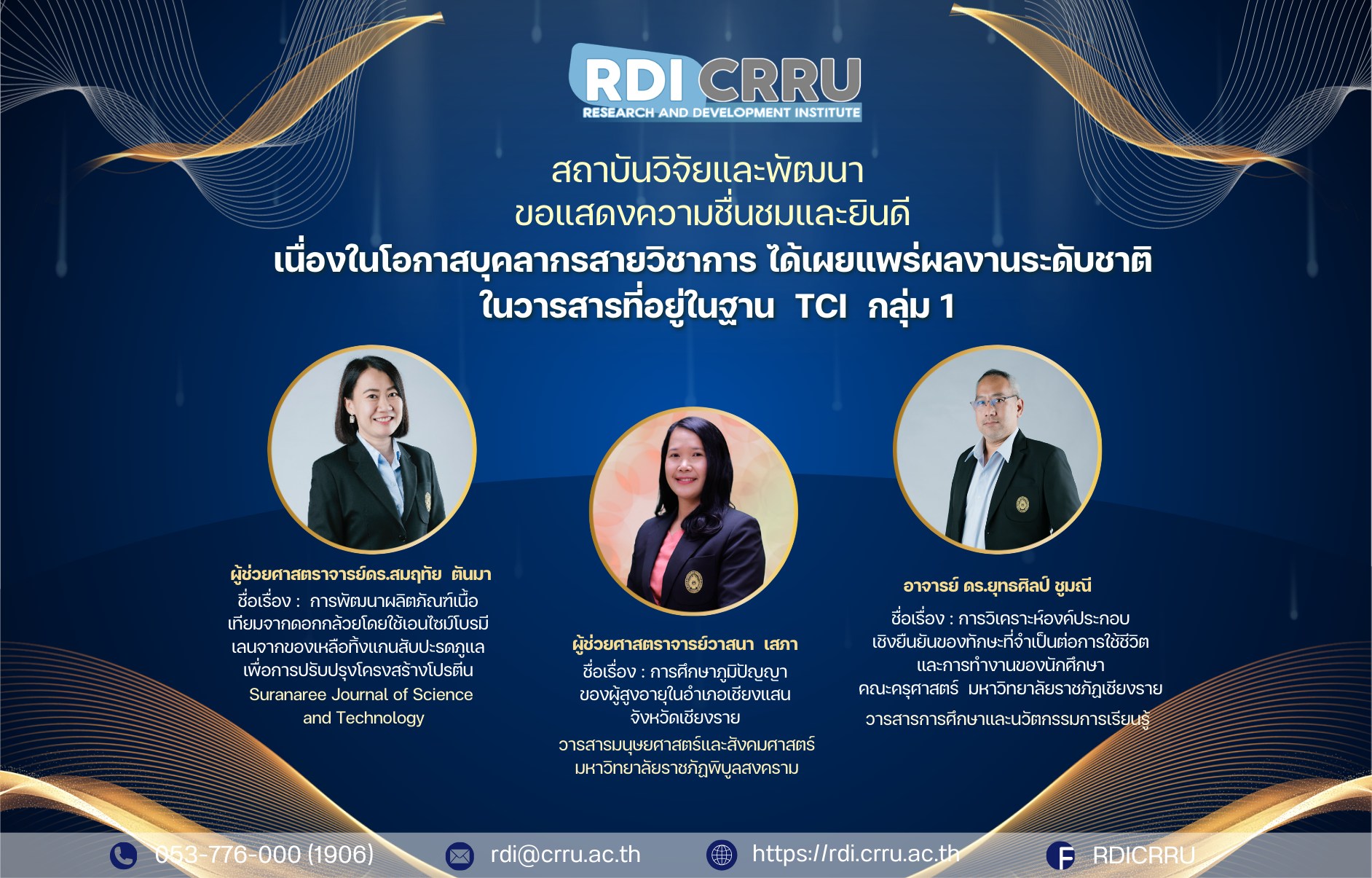 สถาบันวิจัยและพัฒนา ขอแสดงความชื่นชมและยินดีเนื่อง ในโอกาสบุคลากรสายวิชาการ ได้เผยแพร่ผลงานระดับชาติในวารสารที่อยู่ในฐาน TCI กลุ่ม 1 โดยได้รับรางวัลสนับสนุนการตีพิมพ์ผลงานทางวิชาการและเผยแพร่งานสร้างสรรค์ ประเภทการตีพิมพ์บทความวิจัย [...]