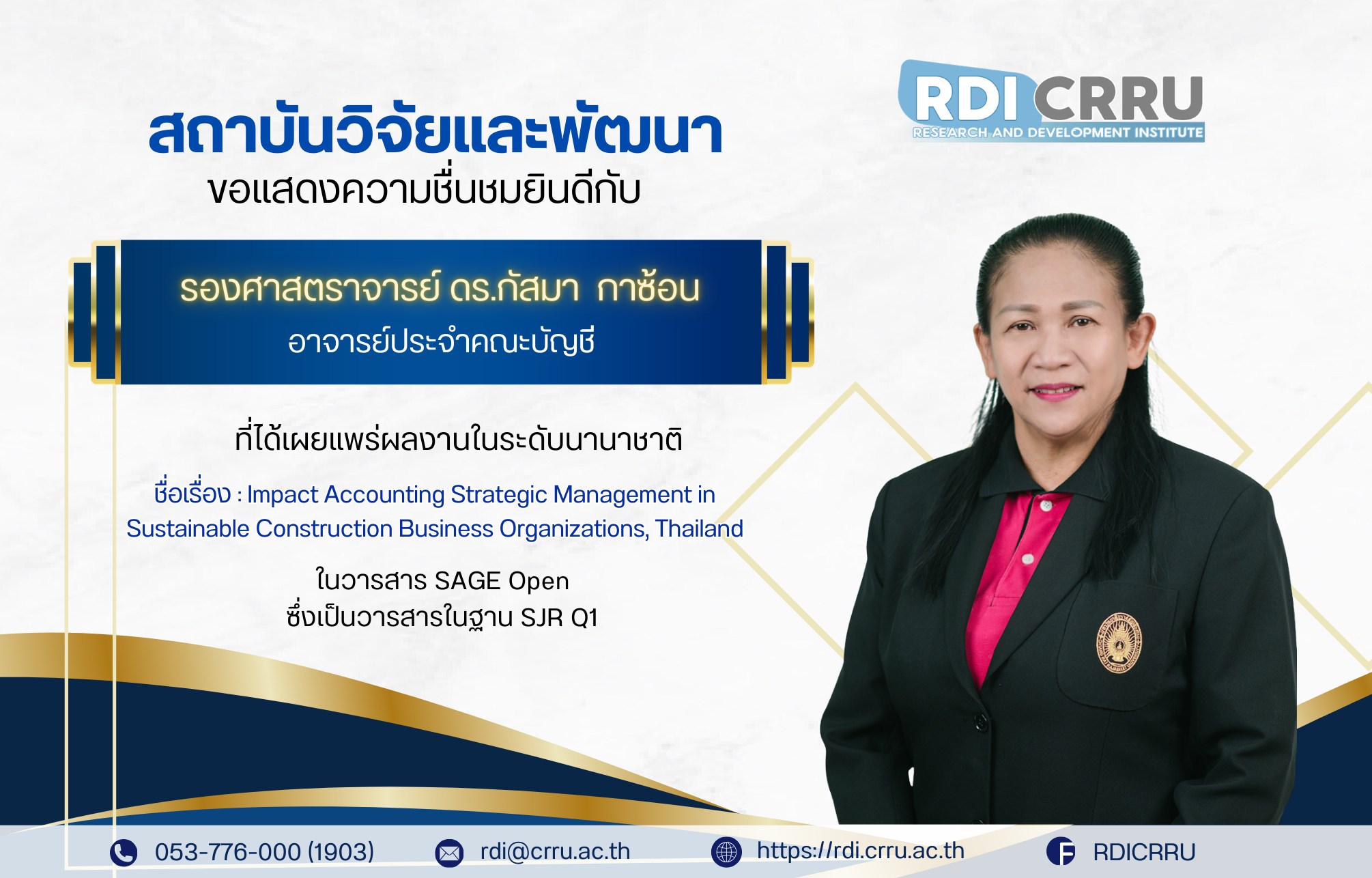 สถาบันวิจัยและพัฒนา ขอแสดงความชื่นชมและยินดีกับ รองศาสตราจารย์ ดร.กัสมา กาซ้อน อาจารย์ประจำคณะบัญชี ที่ได้เผยแพร่ผลงานวิชาการในระดับนานาชาติ เรื่อง : [...]