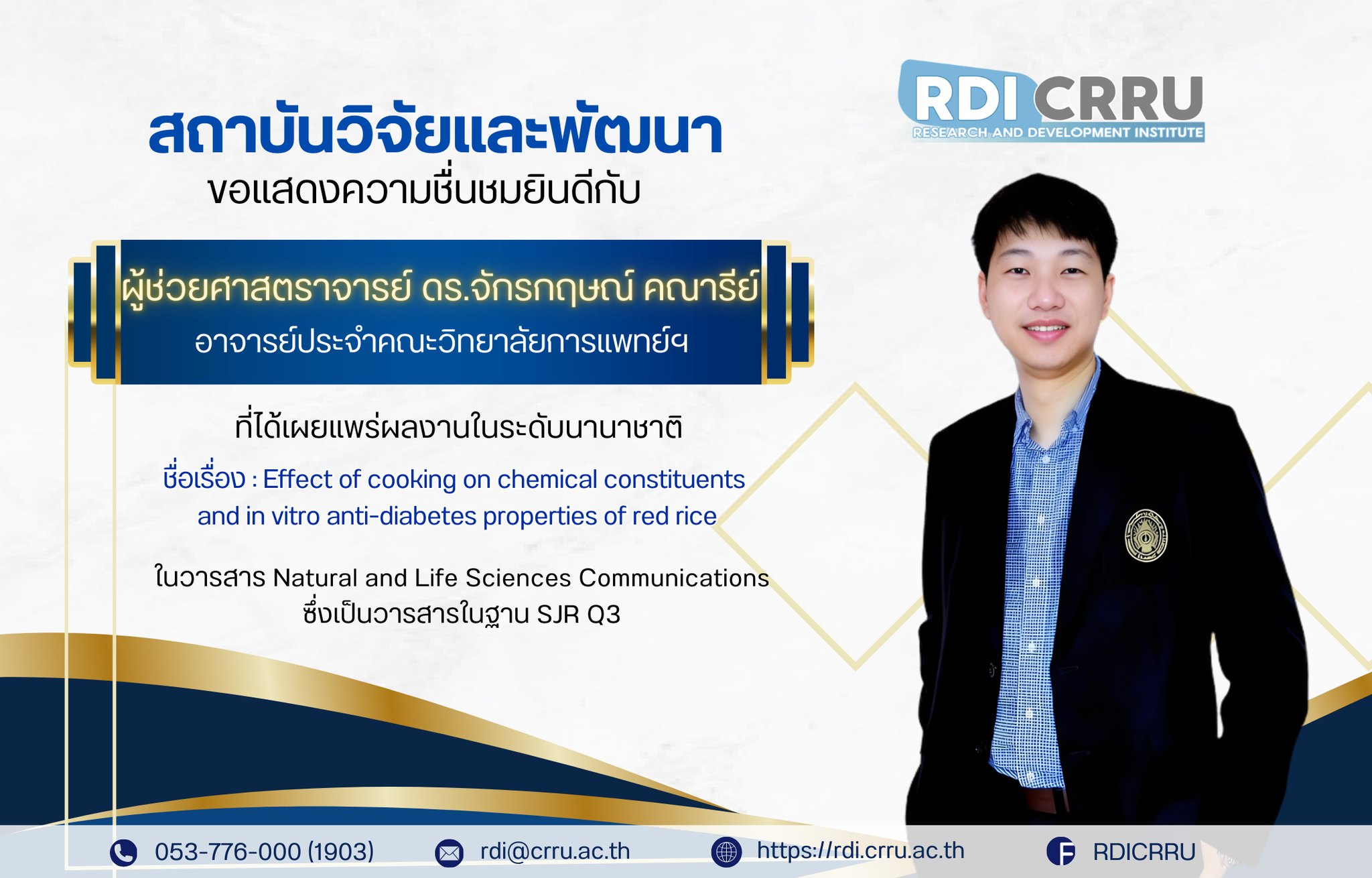 สถาบันวิจัยและพัฒนา ขอแสดงความชื่นชมและยินดีกับ ผู้ช่วยศาสตราจารย์ ดร.จักรกฤษณ์ คณารีย์ อาจารย์ประจำคณะวิทยาลัยการแพทย์พื้นบ้านและการแพทย์ทางเลือก ที่ได้เผยแพร่ผลงานวิชาการในระดับนานาชาติ เรื่อง : [...]
