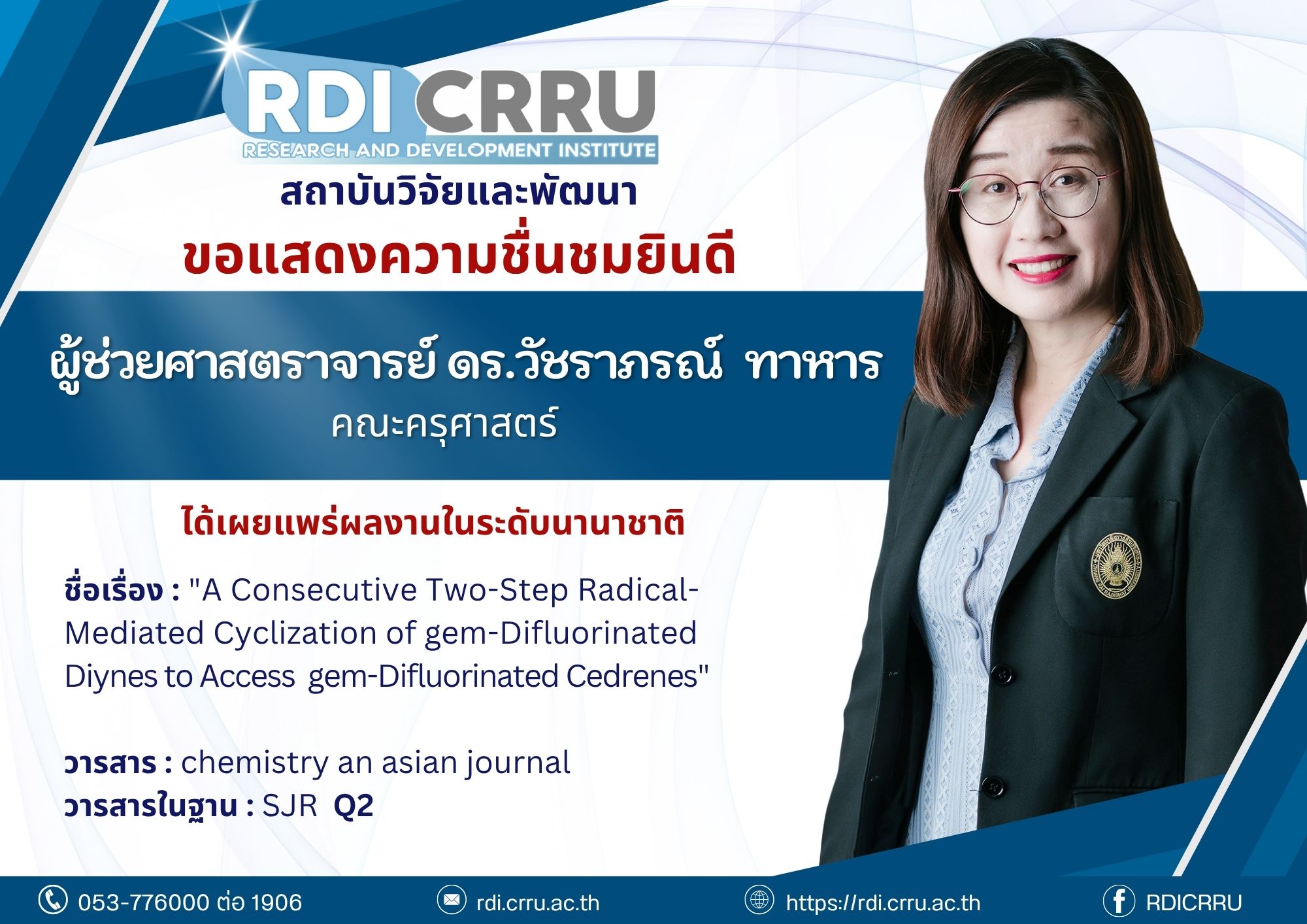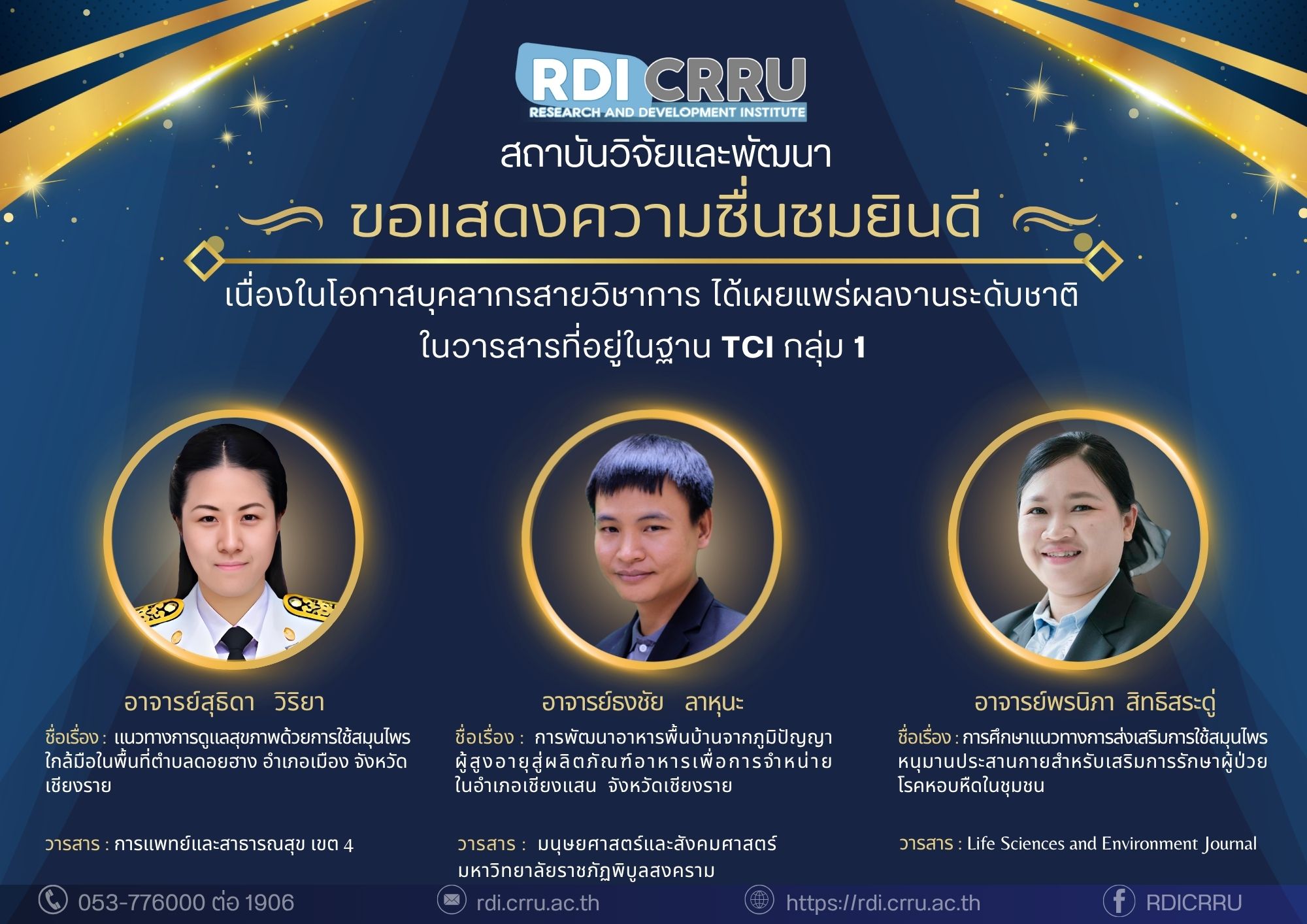 สถาบันวิจัยและพัฒนา ขอแสดงความชื่นชมและยินดีเนื่องในโอกาสบุคลากรสายวิชาการ ได้เผยแพร่ผลงานระดับชาติในวารสารที่อยู่ในฐาน TCI กลุ่ม 1